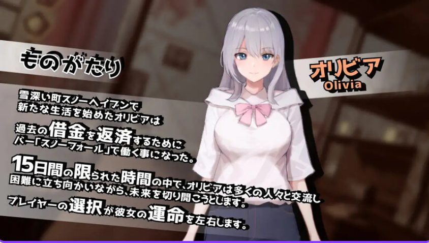 帮助为偿还债务而来到雪之天堂镇的女主角奥莉维亚重新开始人生。在经营酒吧的过程中,